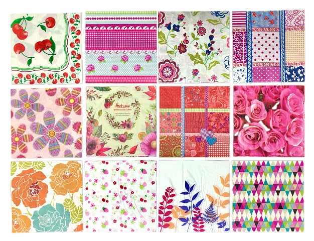 ペーパーナプキン 12種類 各1枚入 合計12枚入 紙ナプキン デコパージュ 花 薔薇 チェリー