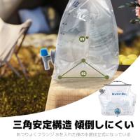 ・自立式&注水口付ウォーターバッグこのウォーターバッグは大きめの注水口付きで手間を掛けずに直接注水できるので、時間節約できるし、水の運搬も楽になります。考えた底部の形状、水を入れた後はそのままテーブルの上に置いて使ったり、車の中に置いて移動中も倒れにくく、自立性抜群です。ウォーターバッグ本体に容量のマーキングが刻まれており、いつでもどのくらいの水量を入れることができるかをお知らせいたします。