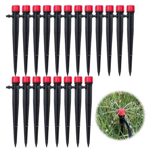 ・?高品質な素材点滴灌漑ノズル、360°フルサークルスプレー形、調整可能なフロー灌漑ドリッパー、上部のノズルを回して水量を調整します、水の流れを1時間あたり0?70L、水資源とお金を節約できます。