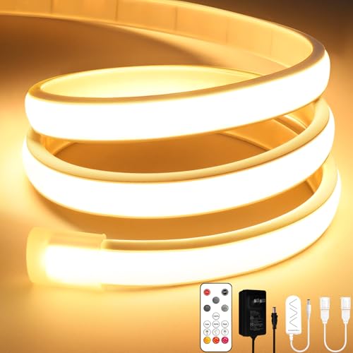 Lamomo COB LEDテープライト 5M 高輝度 チューブライト 3000K 調光可能 電球色 ネオンロープライトリモコン付き IP65防