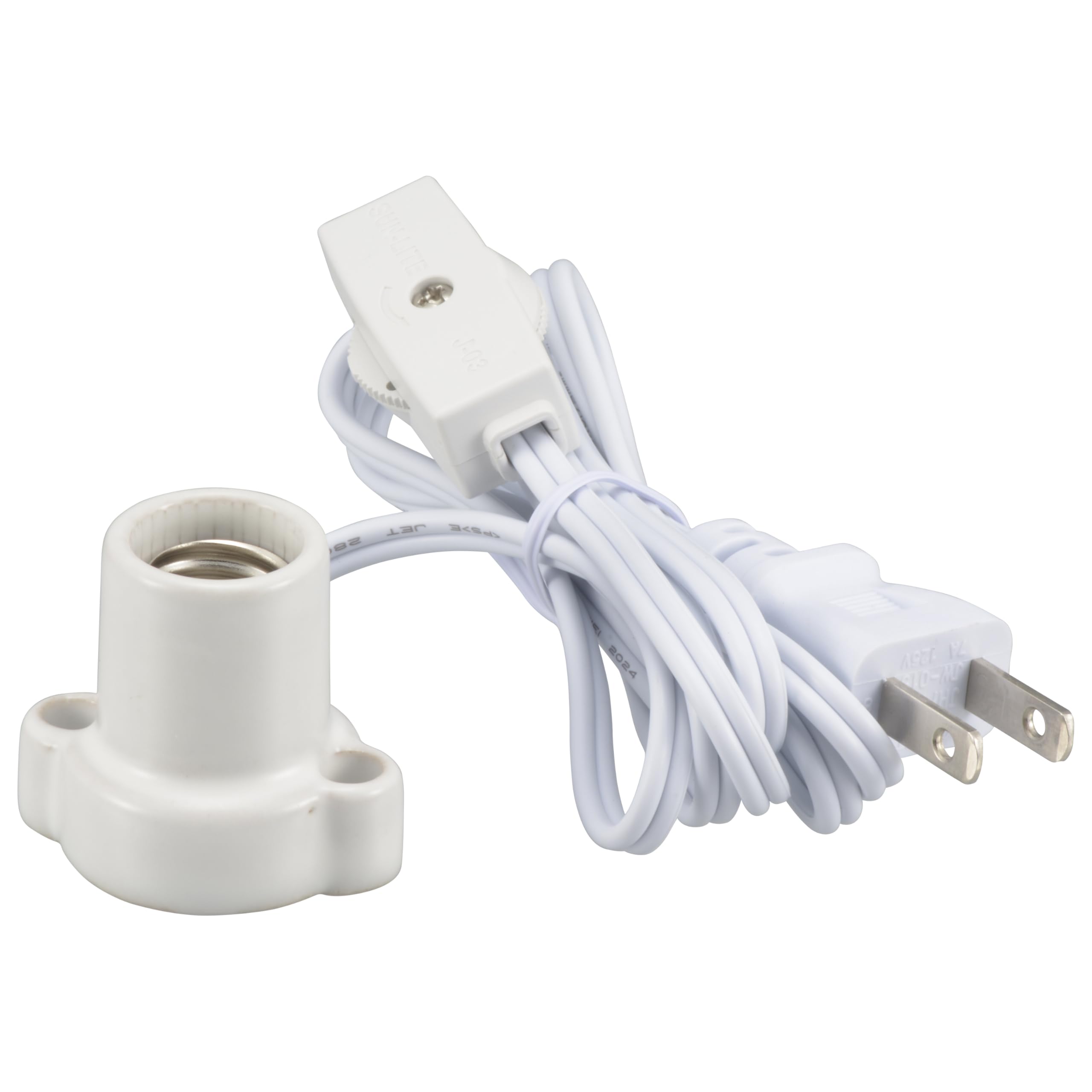 ・ 特 長 熱に強い磁器製です ロータリー式中間スイッチ付き コードが付いて結線加工がいりません 1A-250V 口金E17用 100ワットまで コード長さ1.5m 本体カラーは白