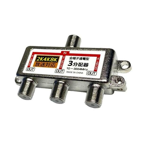 4K8K対応地上/BS/CS デジタル放送対応全端子通電アンテナ分配器3分配器
