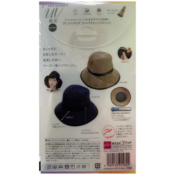 帽子 レディース UV つば広 コジット コンパクトハイクハット 遮熱&遮光 小顔効果 インディゴ ナチュラル