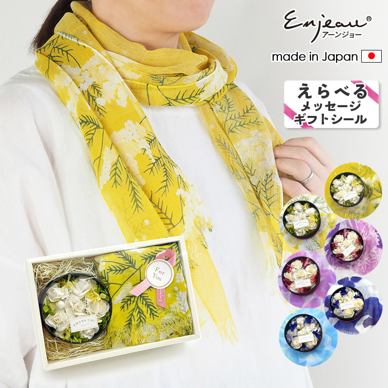 日本製 ギフトセット ショール ストール&丸型プリザソラBOXセット 母の日 UVカット スカーフ 冷感 花柄 冷房対策 アーンジョー