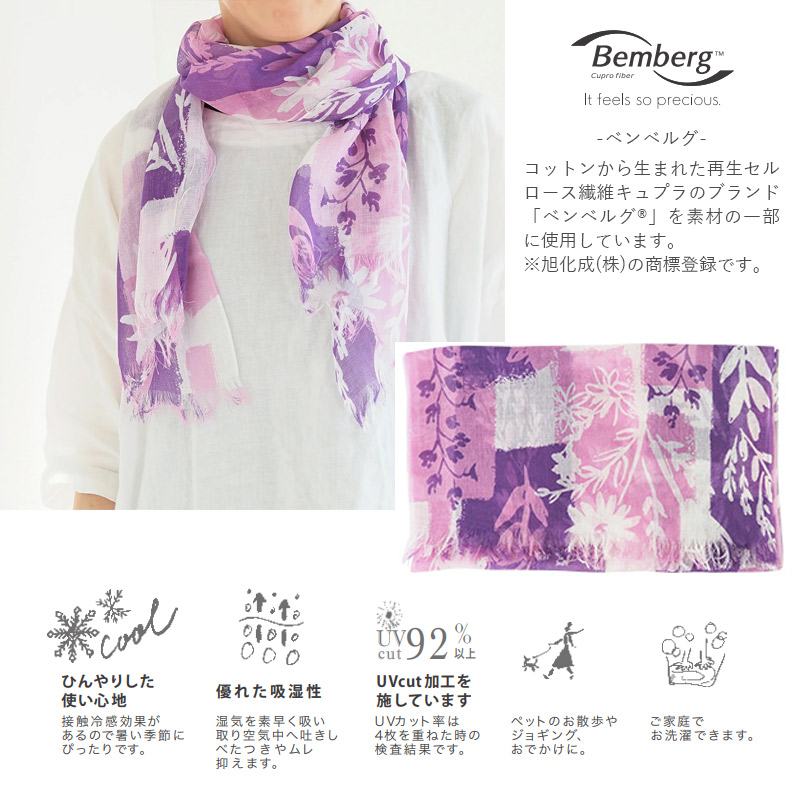 日焼け対策、冷房対策はもちろん、ファッションとしても大活躍のショールは、接触冷感効果があるので、暑い季節にもひんやりした使い心地でぴったり。