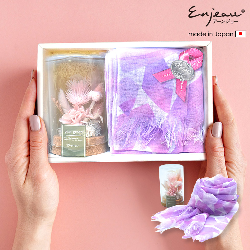 日本製の涼しげで爽やかなストールをセットにしました。