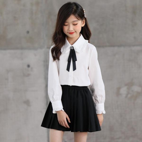 フォーマル シャツ ブラウス 長袖 女の子 カッターシャツ 女子 キッズ Yシャツ リボン付き ワイシャツ 春 秋 冬 子供 可愛い 入学式 卒園式