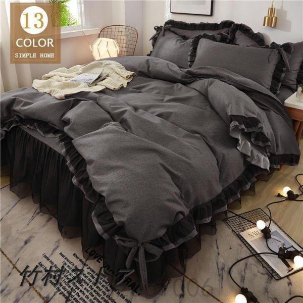 掛け布団カバー レースシングル3点セット フリル付き セミダブル4点セット 肌さわり 姫系 枕カバー寝具カバーセット かわいい ダブル 柔らかい