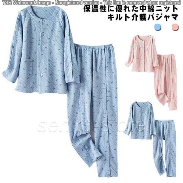 介護パジャマ キルトニット 厚手 介護用パジャマ 全開 長袖 パジャマ 長ズボン 男性 メンズ 入院 オムツ交換楽チン 女性 高齢者 シニア 秋冬 服