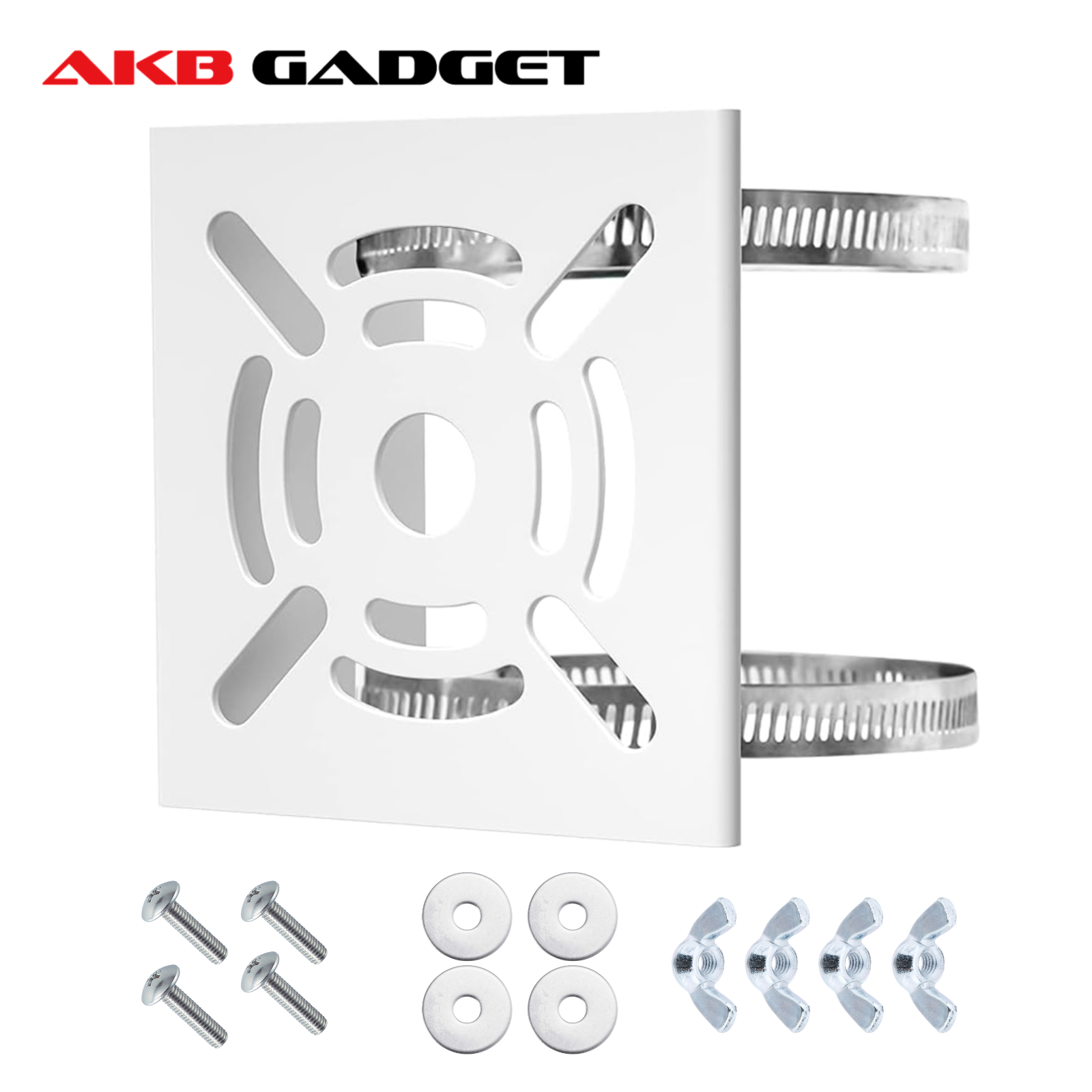 ポール取付金具防錆び加工・静電気防止加工済み。 柱やポールに穴をあけずに、防犯カメラが設置できる軽くて丈夫な取付金具です。 様々なサイズのカメラを設置出来るよう、12個の取付穴と、中央に1つ大きめの穴を適正に設計設置されます、自由度は高いです。 重量:約250g | 使用場所が広い防犯カメラの他ソーラーパネルやセンサーライト、ミラー等も取り付けられます。 空き巣や車上荒らし等の対策として、ご家庭やオフィス、店舗、ガレージ、街頭の防犯にお役立て下さい。 ポールの形状も円柱だけでなく、角柱にも取り付けることができます。 柱やポールに穴をあけずに、防犯カメラが設置できる軽くて丈夫な取付金具です。 注:光撮影やディスプレイによって、実際の商品の色やサイズとウェブサイトのが若干異なる場合があるかもしれません。 | ステンレス製防錆び加工・耐水性・耐熱性に優れて、耐久性に関しても安心感があります。