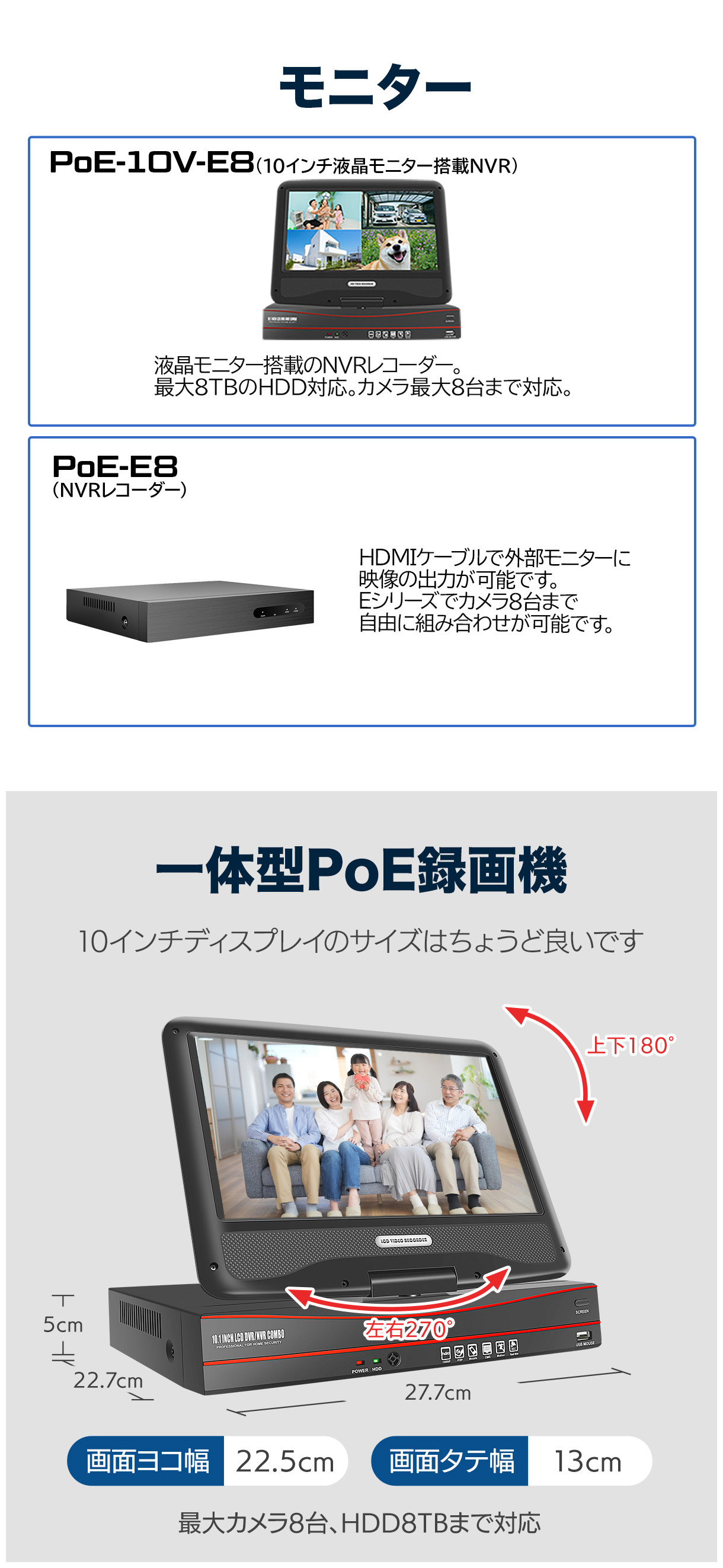 | カメラ接続 | 最大8台 |