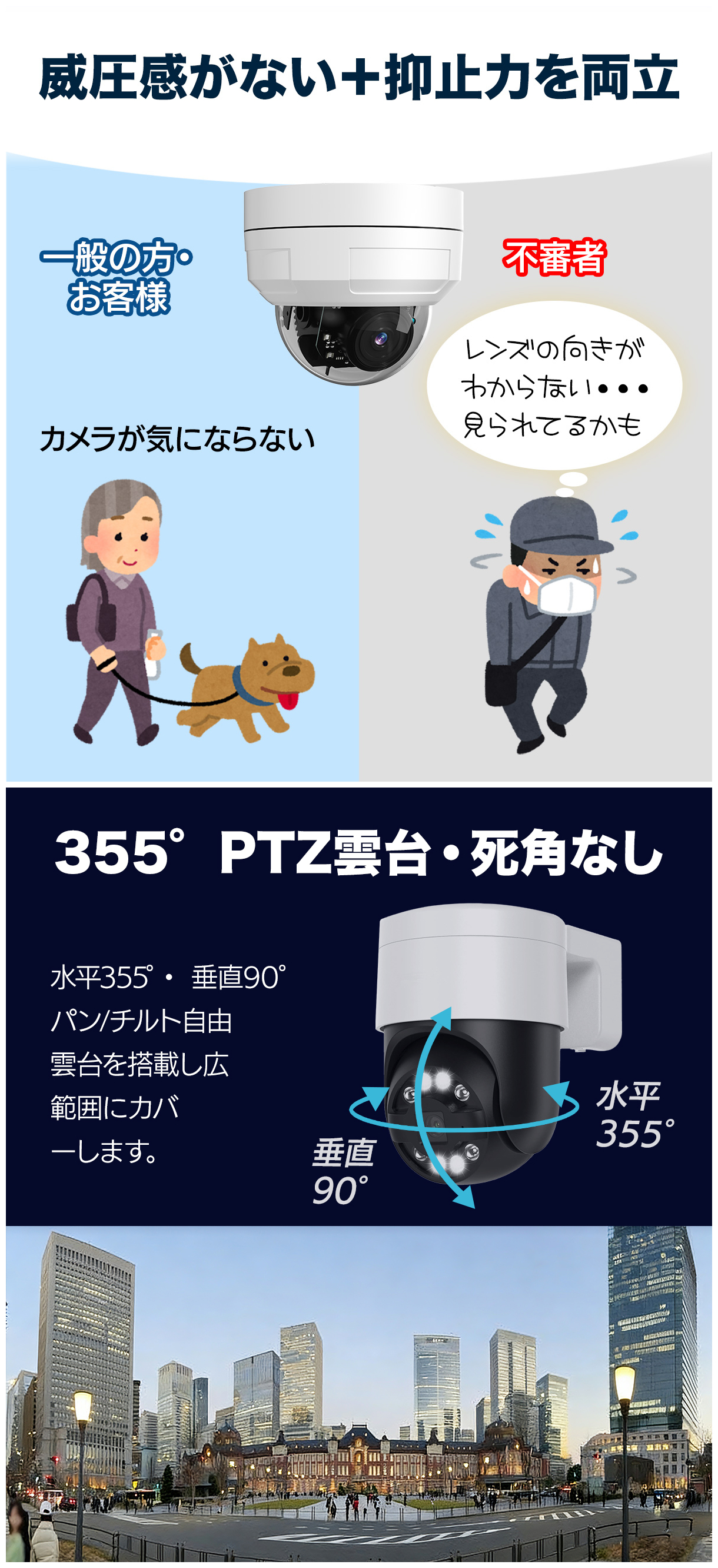 ▼人感センサー × LED威嚇ライト搭載