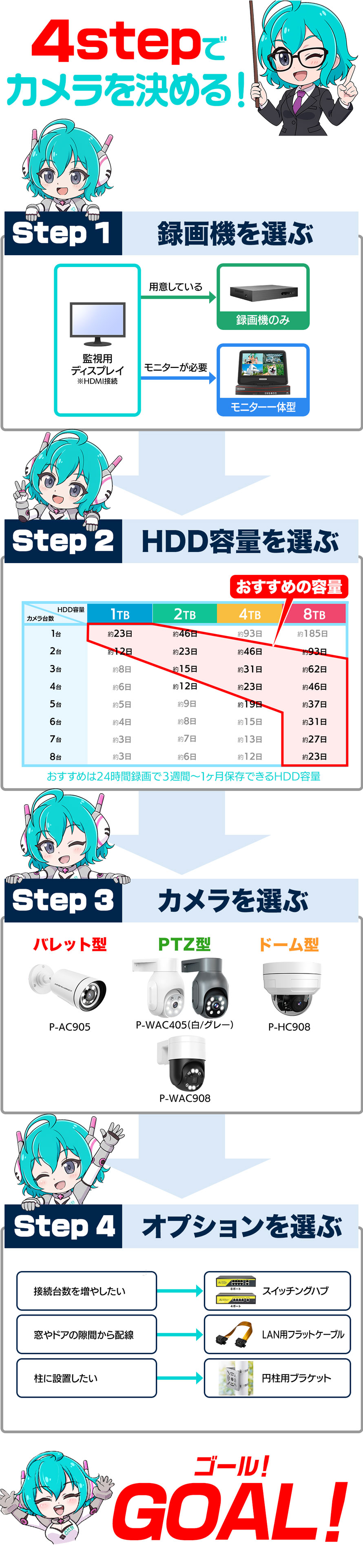 - 台数選択 — カメラ1〜8台まで自由に構成