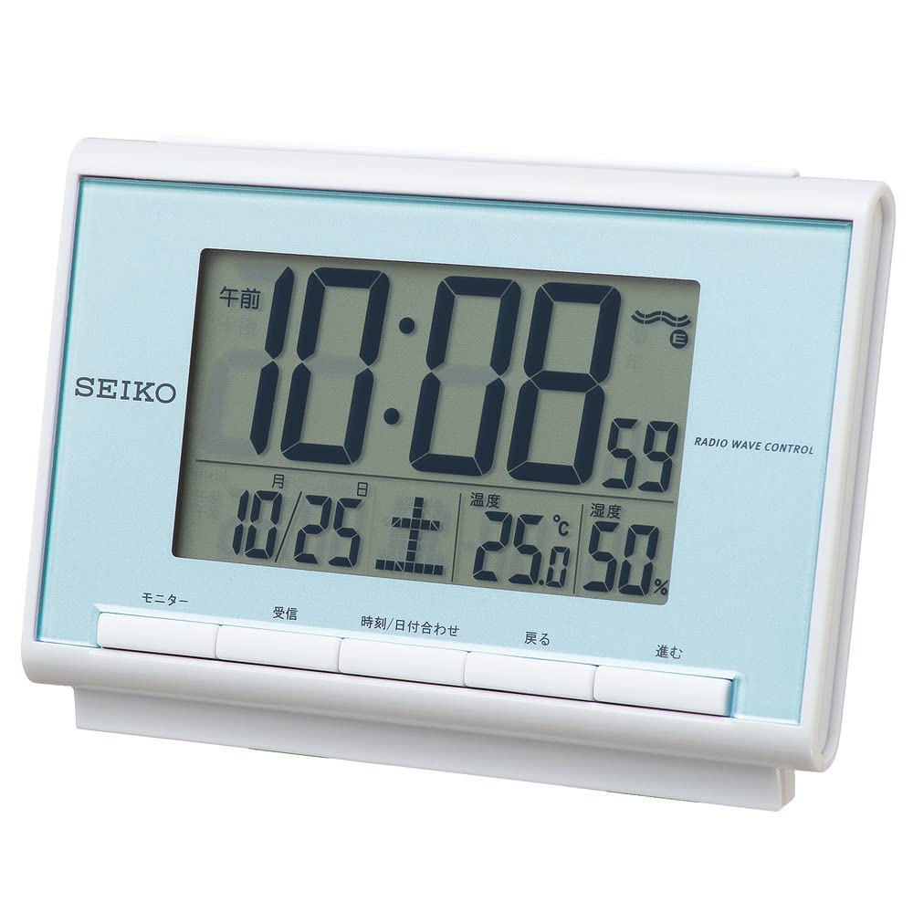 セイコークロック(Seiko Clock) セイコー クロック 目覚まし時計 電波 デジタル カレンダー 温度 湿度 表示 薄青 パール SQ698L