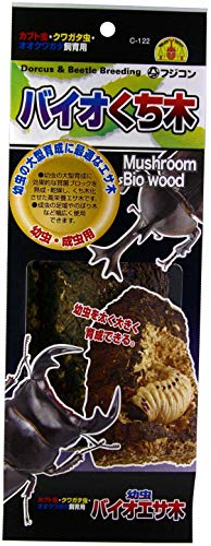 幼虫の大型育成に最適なエサ木! フジコン バイオくち木 対象 カブト虫、クワガタ虫、オオクワガタ 特長 ●幼虫の育成に効果的な茸菌床を熟成・乾燥し、くち木化させた高栄養エサ木です。●成虫の足場やのぼり木など幅広く利用できます。 数量 1個 サイズ(約) 幅10×奥行き5×高さ10cm※天然素材ですので、サイズにはバラツキがあります。 重量 100g 生産国 日本