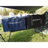 キャンプギアの持ち運びに便利な大型のソフトコンテナボックスです。 上蓋とケース周囲に硬いプラスチック板が入っているため、積み重ねも可能で車載時に便利。大きな持ち手があるので重たいときは、2人で持ち運びすることもできます。
