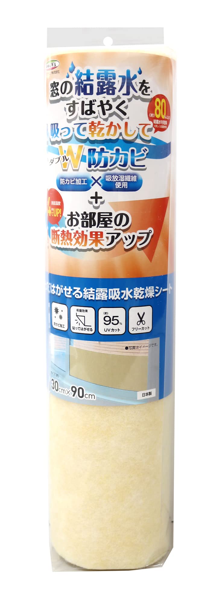 商品名:明和グラビア 貼ってはがせる 結露 吸水 乾燥 断熱 省エネ パネル UV:95%カット 防カビ加工 無地 クリーム 30cm×90cm DP-3090T CR