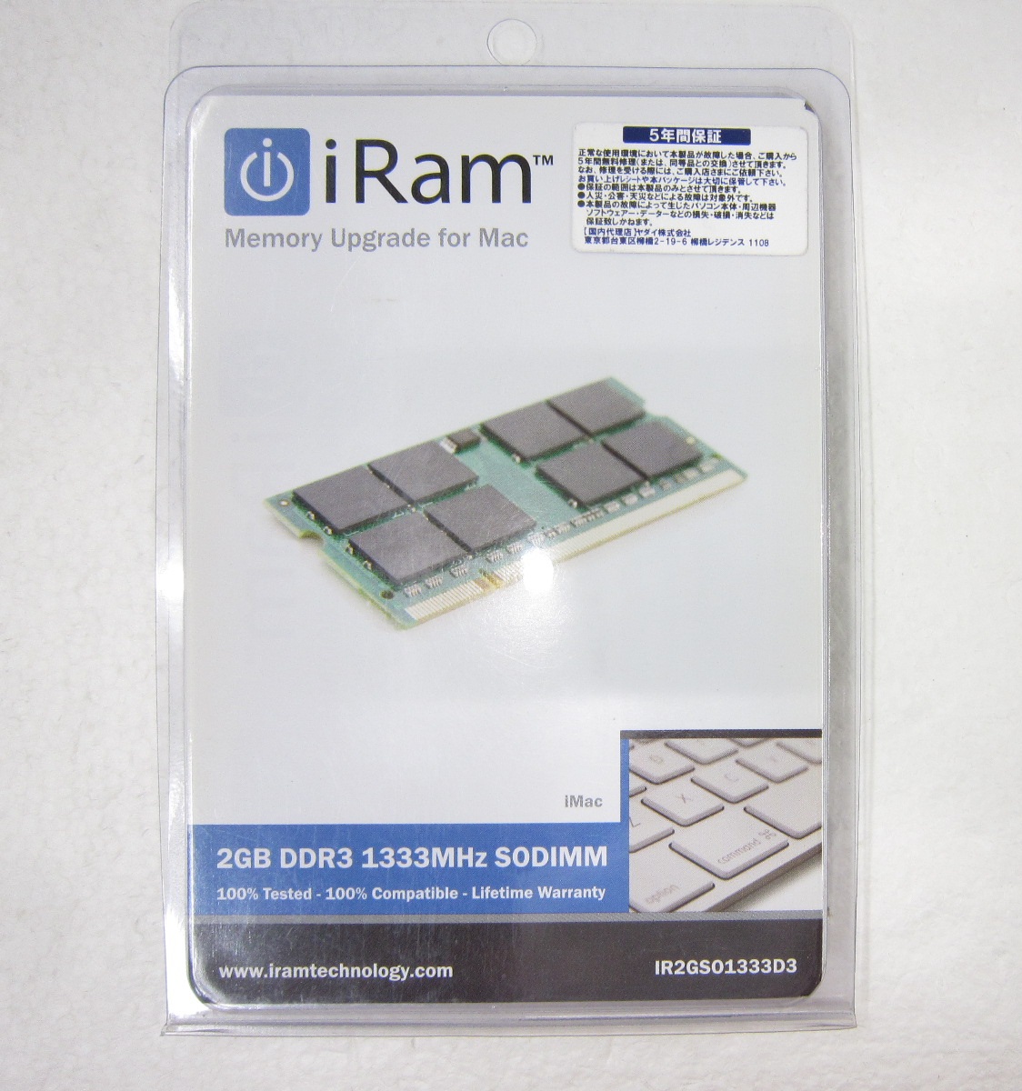 中古 ノート用メモリ SODIMM 2GB PC3-10600 DDR3 1333MHz CL11 iRam IR2GS01333D3