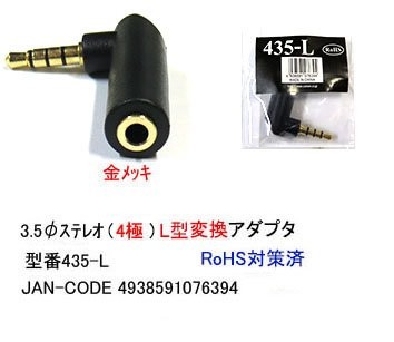 ・ステレオミニプラグ(4極) L字型変換アダプタ