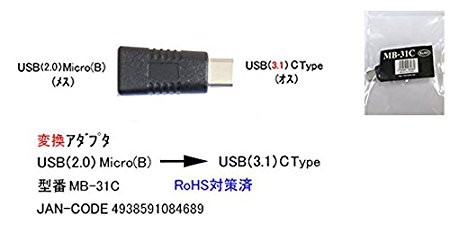 変換アダプタ USB2.0 MicroB(メス) → USB3.1 Cタイプ(オス) COMON MB-31C