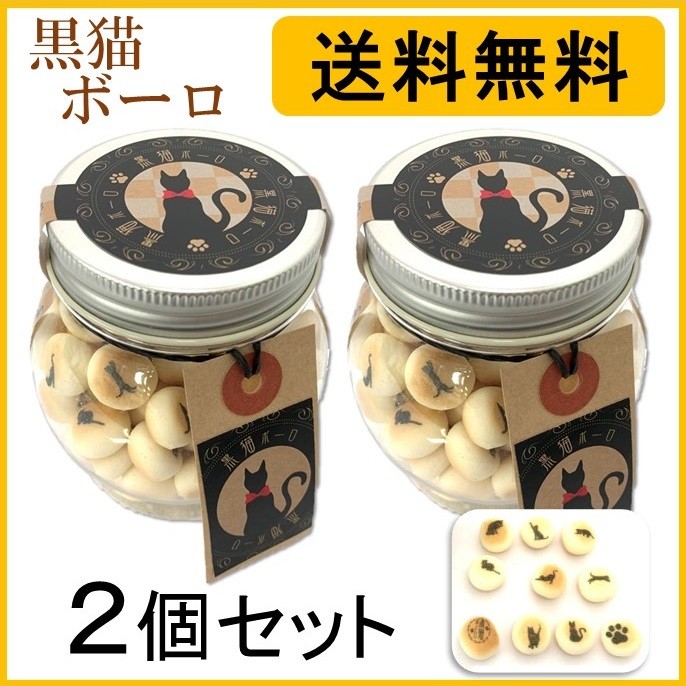 猫 お菓子 黒猫ボーロ たまごボーロ 2個セット プチギフト 父の日 お中元 たまごぼうろ おみやげ プレゼント ねこ ネコ おかし おやつ