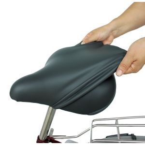 【取寄品 出荷:約5−9日 土日祝除く】【メール便1個まで対象商品】■一般自転車大きめサドル用■大きいサドル用新登場! フィット感UP! ストッパーで止めれば、絞込みが楽々 防水性■適応サドル:ミニサイクル、三輪サイクル、シティサイクル、軽快車 (スポーツサイクル及び特殊サドルには適合しません)●材質:表:ポリウレタン/裏:ポリエステル●カラー:黒●適合範囲:縦+高さ約29〜34cm横+高さ約29〜35cm