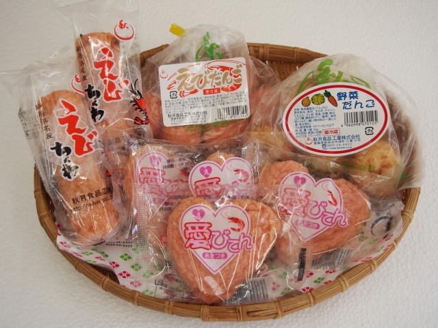 ◆えび竹輪◆魚肉・えび・豆腐・卵・食塩・みりん・砂糖・調味料 (アミノ酸等)・保存料(ソルビン酸)・着色料(赤106)・豆腐用凝固剤(原材料の一部に小麦・乳・大豆を含む)