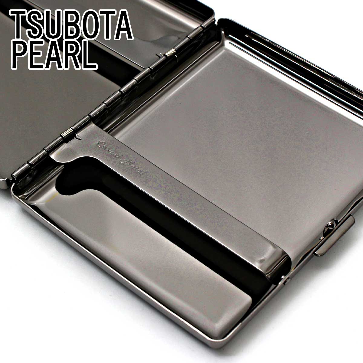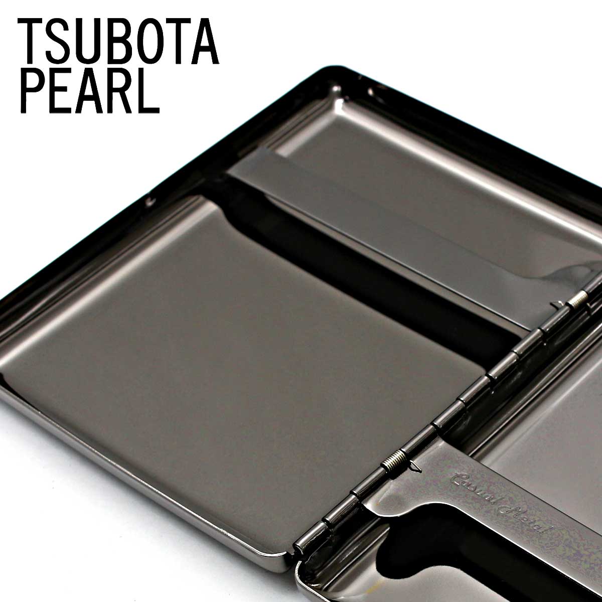 坪田パール シガレットケース カジュアルメタル ブラック プレーン 20本 100mm 1-92307-51 メール便専用