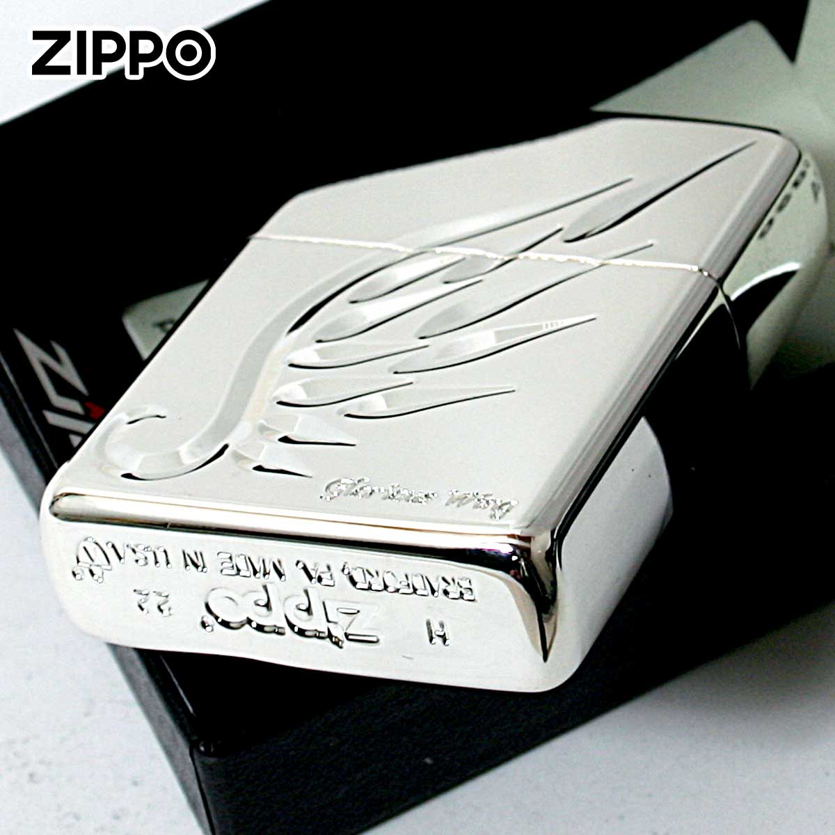 Zippo ジッポライター アーマー 羽 ウイング 深彫 シルバー V-WING SV メール便専用商品
