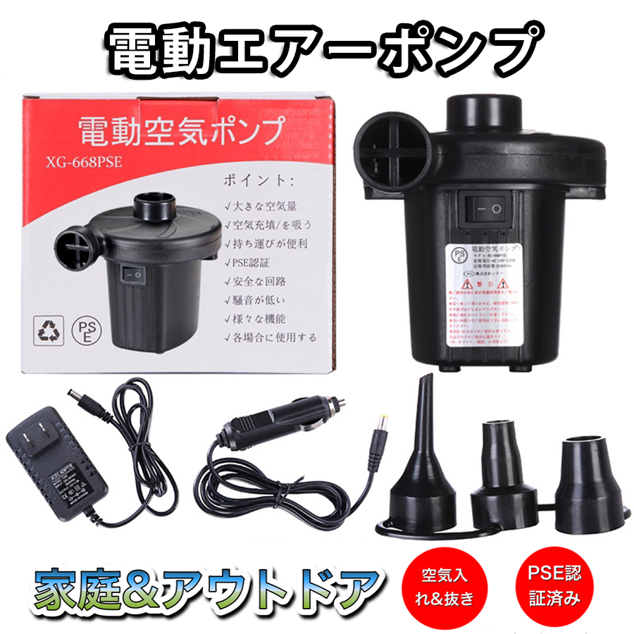電動エアーポンプ 空気入れ 空気抜き コンセント式 パワフル ノズル3種付き エレクトリックポンプ 手持ちポンプ 小型 空気注入・排出 ハイパワ