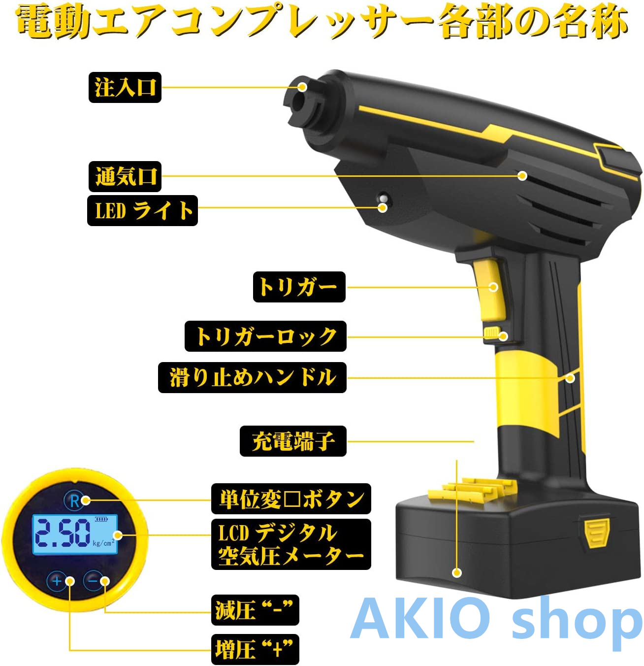 電動コンプレッサー エアポンプ 空気入れ 2200mAh LCDデジタル表示 自動停止 自動車タイヤエアーポンプ ロードバイク/バイク/ボール/小型自動車