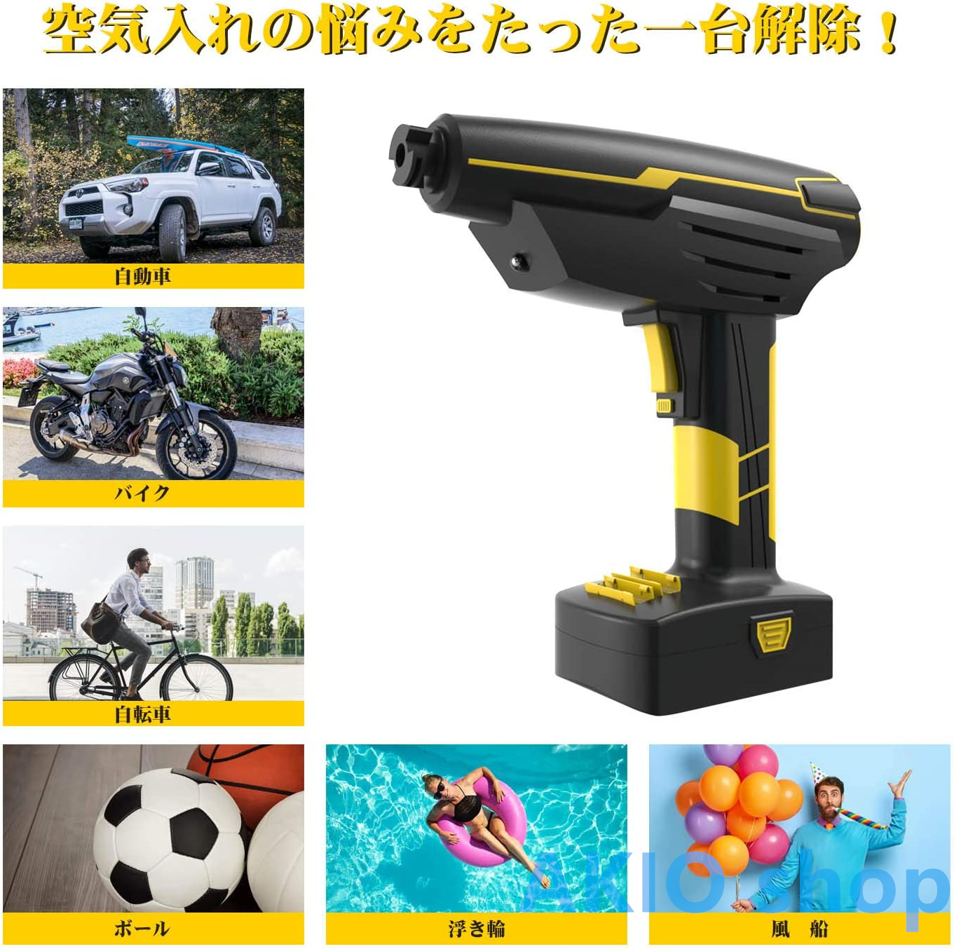 2200mAhの大容量バッテリーを搭載しており、満タン充電で四つのタイヤを充填できます。自転車、バイク、自動車、ボール、浮輪など空気を入れるものに対応可能です