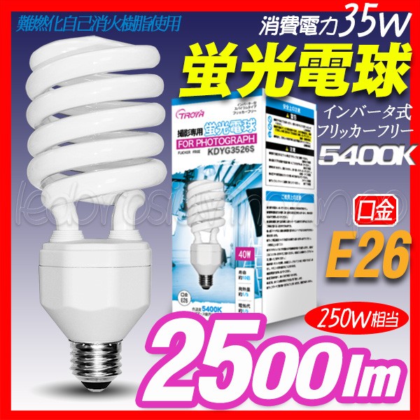 【2個】 蛍光電球 蛍光ランプ 蛍光灯 電球型蛍光灯 撮影照明 工事現場 省エネ スパイラル型 蛍光球 インバ−タ-式 35W/250W相当 白E26型