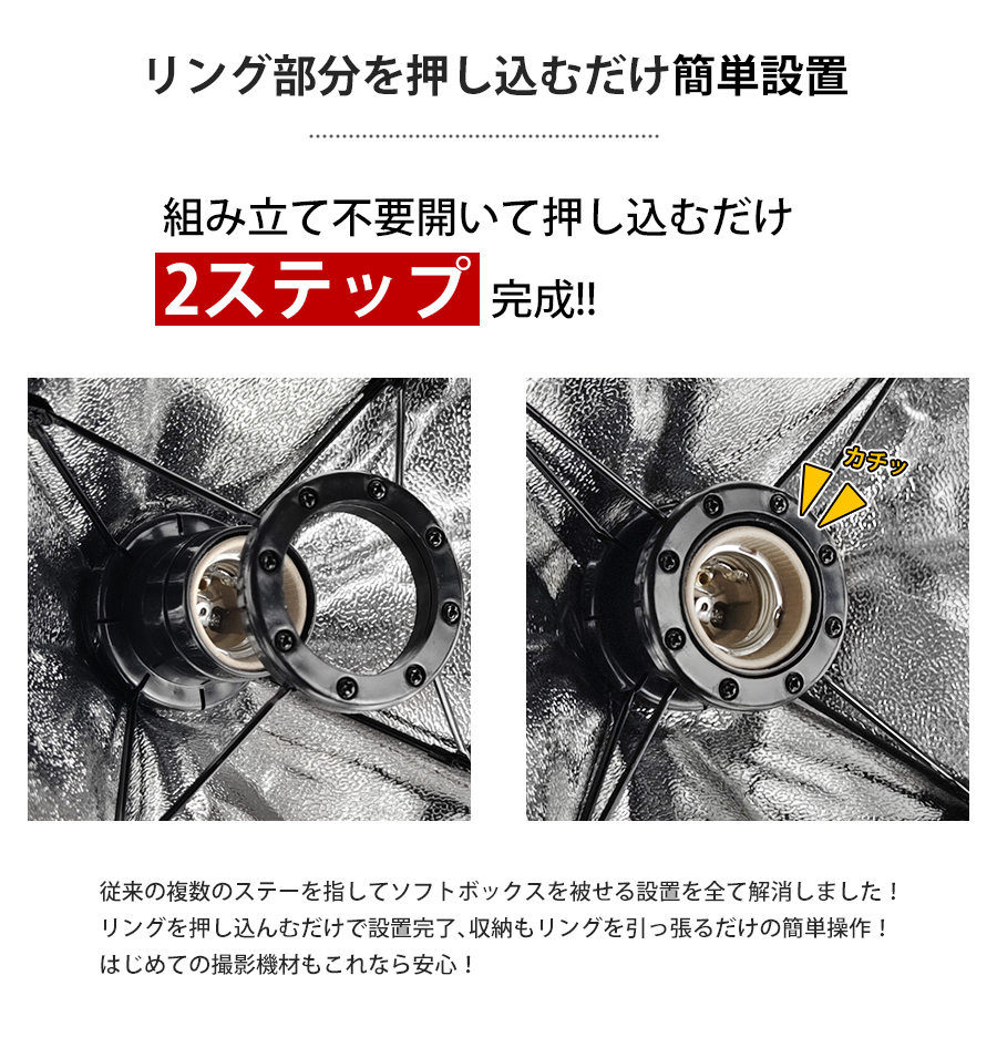 初心者でも扱いやすい撮影用ライト、テーブルの上で料理や商品を撮影するなら、このモデルで1灯でも十分対応できます。300w白熱電球以上の明るい光源を使い、人物撮影にも流用できます。料理や雑貨メインで、たまに人物を撮影するような場合は、このモデルが適しています。より効果的に人物撮影やファッション服装撮影の場合は2灯以上の使用をお勧めです