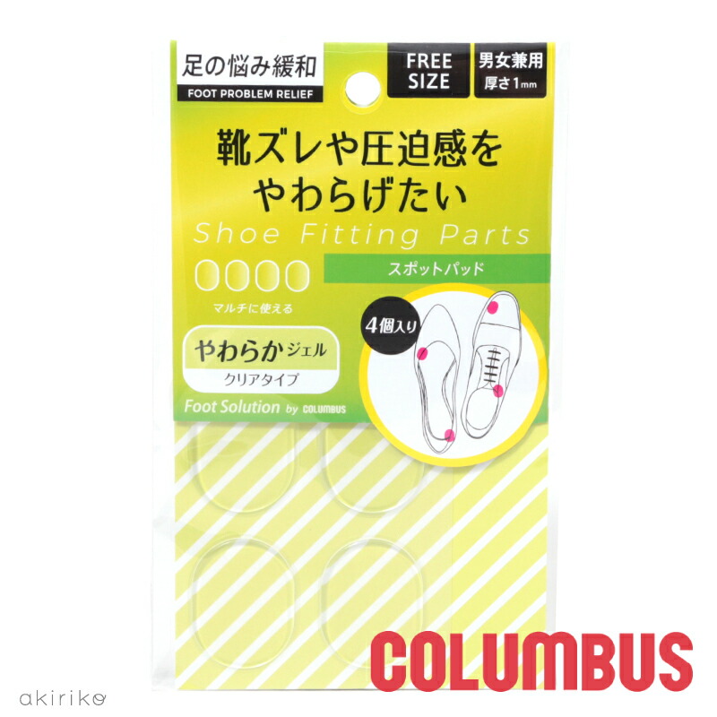| 注意点/備考 | シューズショップアキリコ akiriko 神戸から全国へお求めやすい価格で 人気のレディースシューズ、レディースブーツ、レディースサンダルを出来るだけ早い発送でお届け。 (婦人靴のお店 レディースシューズ レディース靴) レディース(女性靴 女性用 婦人用 婦人靴 婦人用) アパレル ファッション 通販 サイト です。 COLUMBUS フットソリューション スポットパッド シューズの足当たり改善 男女兼用 フリーサイズ cb-sptpad |