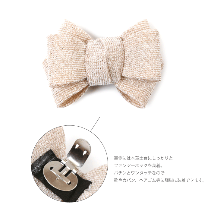日本製 シューズアクセサリー 3Dリボン×ラメストライプ コサージュ akiriko k227 アキリコ 爆買