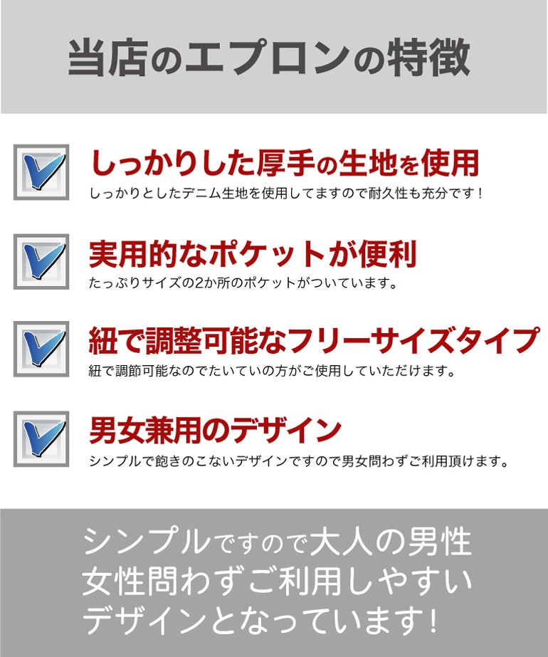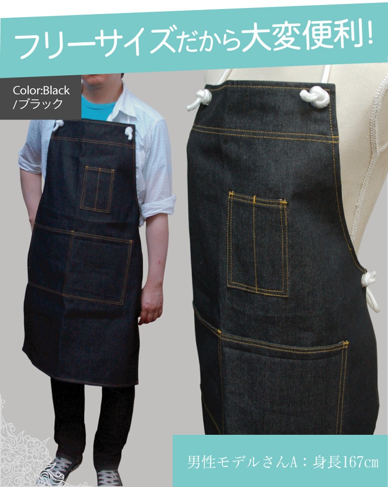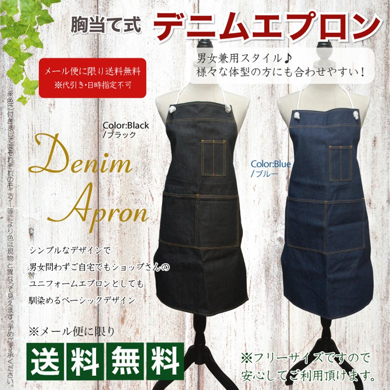 名入れ 出来ません スタンダード デニム エプロン フリーサイズ メール便 送料無料 10枚以上で 宅配便 送料無料 男女兼用 ユニフォーム メンズ レディース