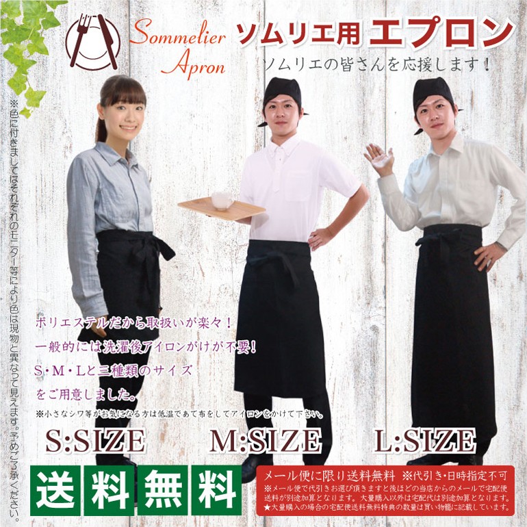 名入れ 出来ません 訳あり 薄手 生地 ソムリエ 用 エプロン Lサイズ 速く乾きしわになりにくい メール便送料無料 10枚以上宅配便 送料無料 ソムリエエプロン