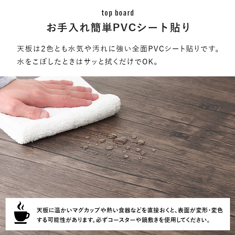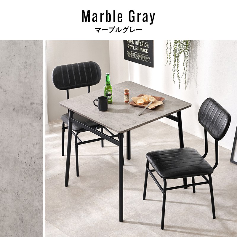 | [サイズ] テーブル:(約)幅70×奥行70×高さ70cm、 チェアー:(約)幅45×奥行48×高さ78×座面高43cm [素材] フレーム:スチール 天板:合成樹脂化粧繊維板(塩化ビニル) チェア張地:合成皮革 [製造国] 中国製 ■組立式 |
