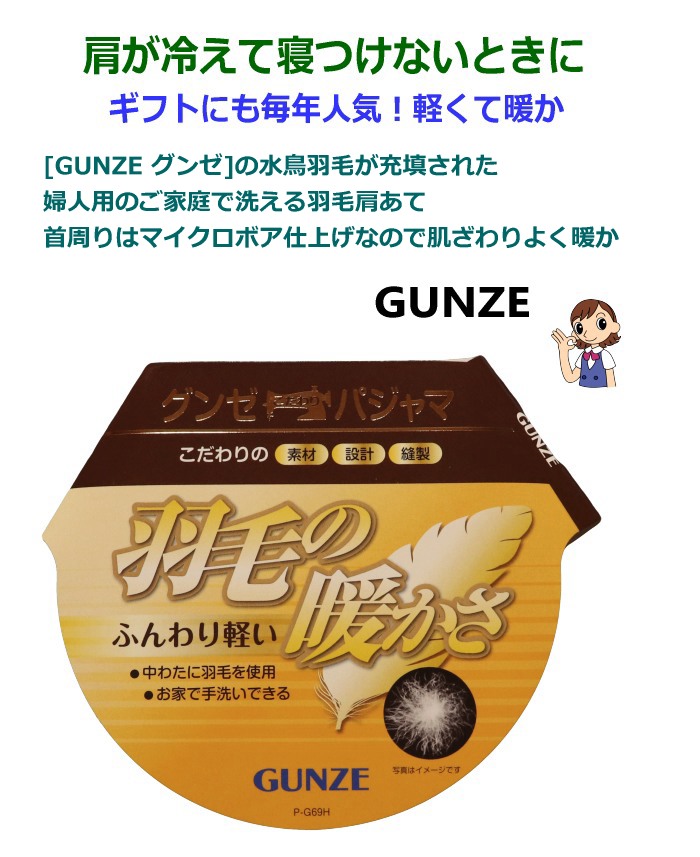 | [GUNZE グンゼ]の水鳥羽毛が充填された婦人用のご家庭で洗える羽毛肩あて。首周りはマイクロボア仕上げなので肌ざわりよく暖か。 [婦人:Lサイズ] [カラー] [組成] 生地:新合繊ポリエステル100% 中身:水鳥ダウン80%スモールフェザー20% 襟部分:ポリエステル100%ボア [原産国] 中国製 |