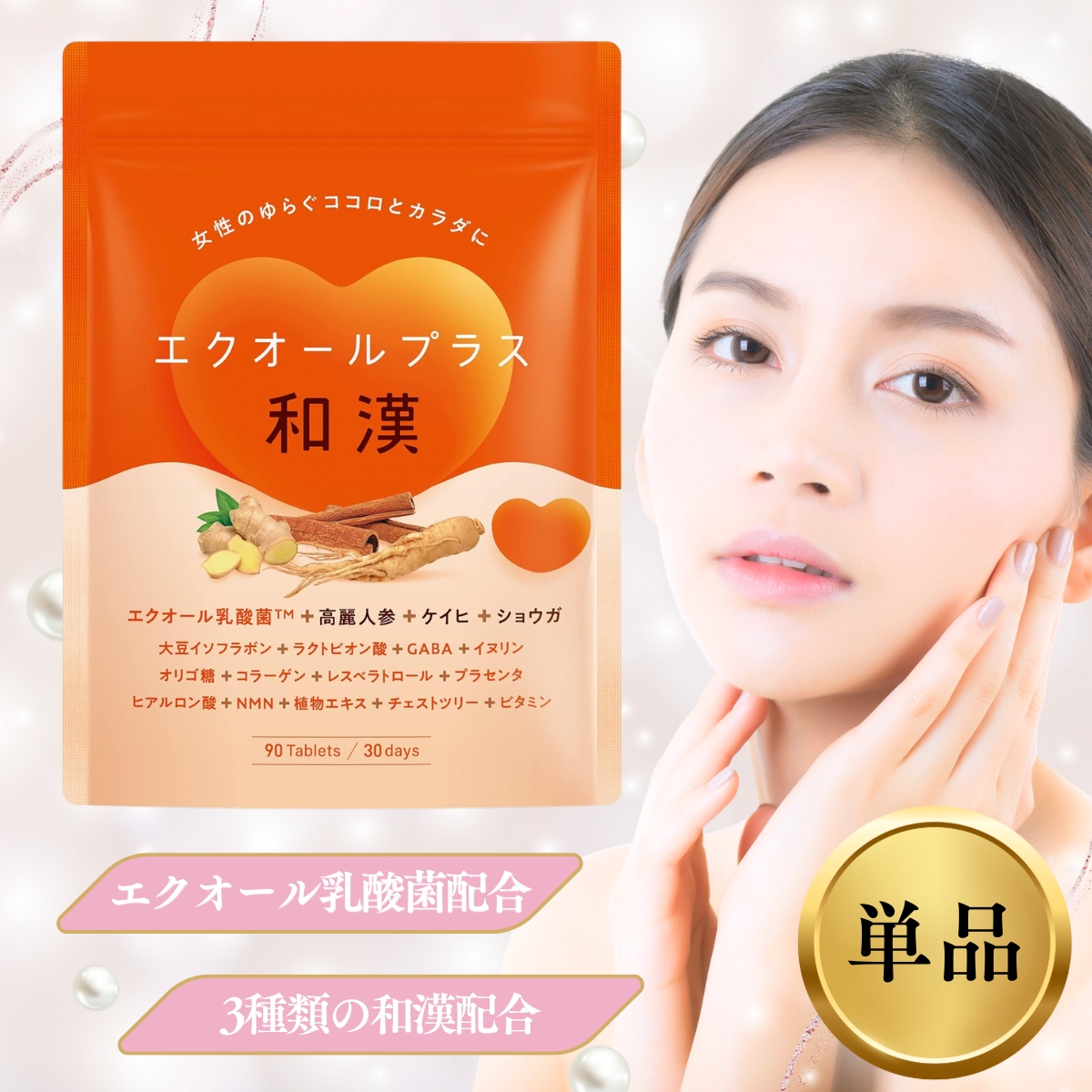 エクオールプラス和漢 エクオール サプリメント イソフラボン NMN 高麗人参 GABA イヌリン 国内製造 90粒 30日分