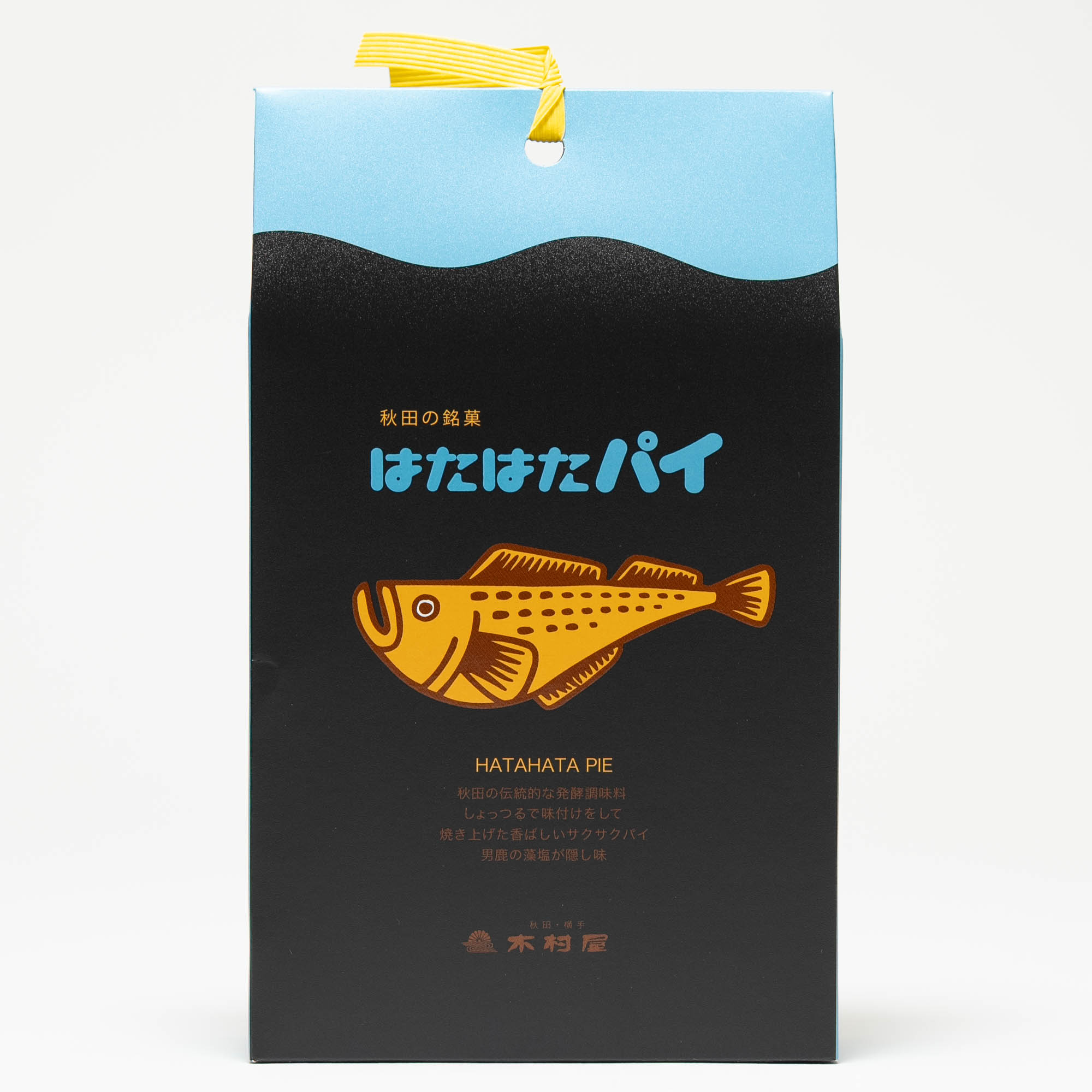 秋田の銘菓“はたはたパイ”は、その形をお菓子に表わし、秋田の伝統的な発酵調味料「しょっつる」で味つけをして焼き上げた、香ばしいサクサクパイです。