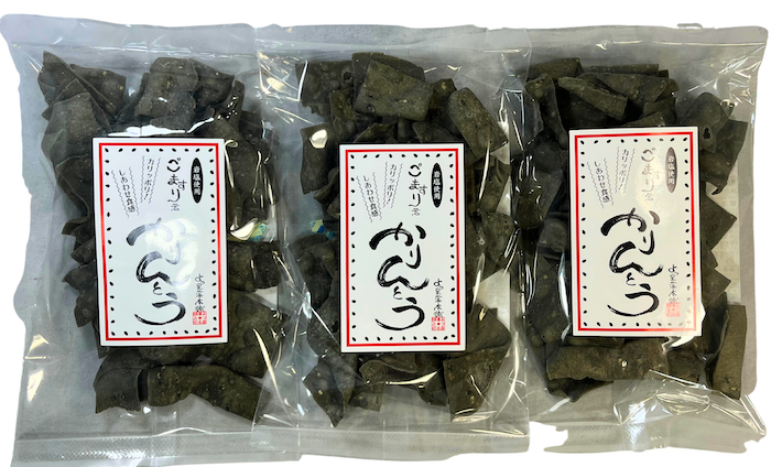 ◆原材料名:小麦粉(国内製造)、砂糖、植物油脂、黒胡麻、食塩、竹炭