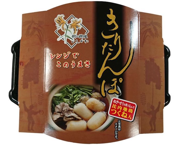 1人前のスープときりたんぽがレンジ対応の容器に入っているので、電子レンジで8分間温めるだけで簡単に本場のきりたんぽ鍋をお楽しみいただけます。
