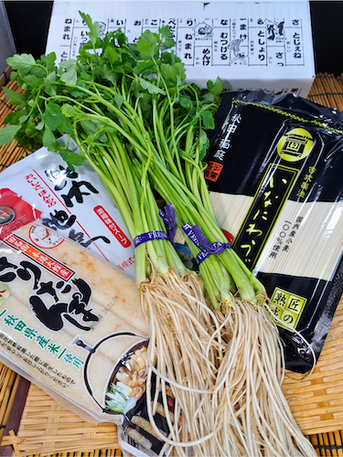 ◆商品名:せり、スープ、稲庭うどん、きりたんぽのセット