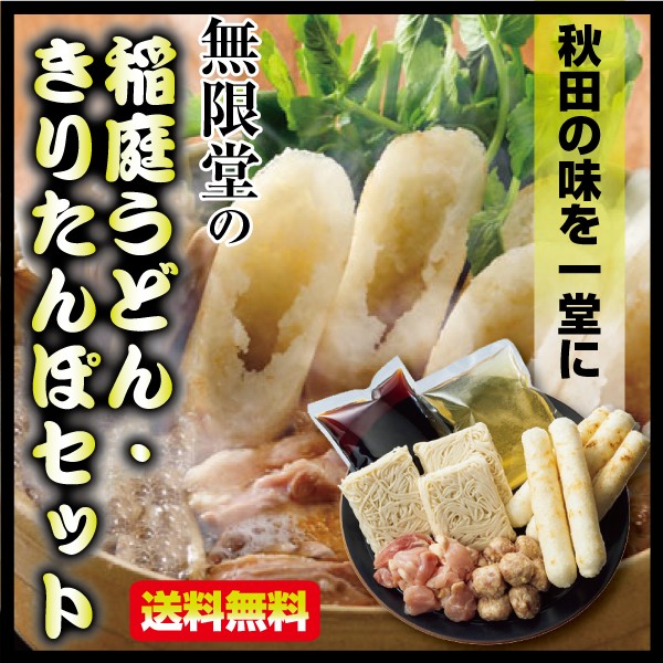【冷凍便 】秋田 無限堂 きりたんぽ鍋セット 稲庭うどん付 約3人前 送料無料 代引き不可 メーカー直送