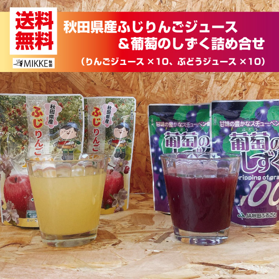 お礼の品 秋田県産 ふじりんごジュース 葡萄のしずく 20パック入 JA秋田ふるさと だいごの丘 果汁 100% ストレート 送料無料