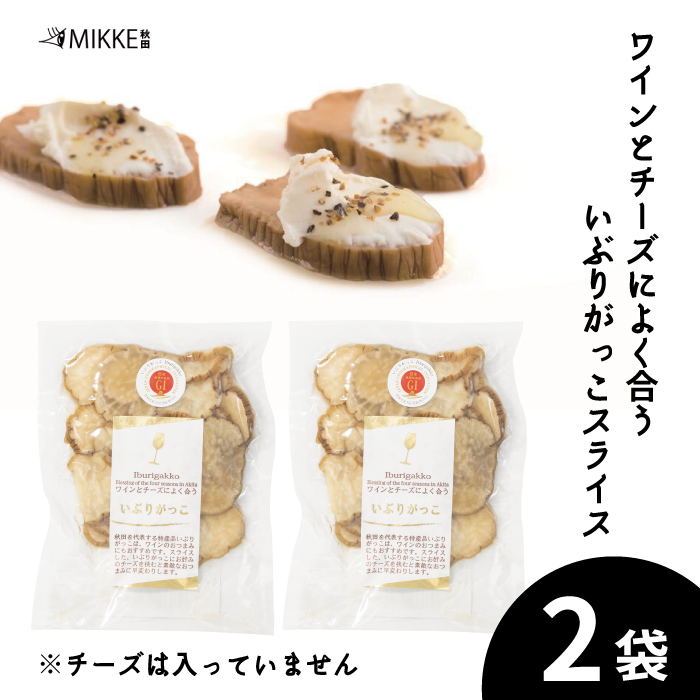 スライスしたいぶりがっこにお好みのチーズを挟むと素敵なおつまみに早変わりします。
