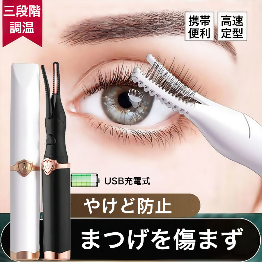 ホットビューラー 充電式 USB まつげ ビューラー ホット まつ毛カーラー 下まつげ 2in1 クリップ コテ型 コーム型 アイラッシュカーラー まつげ カール