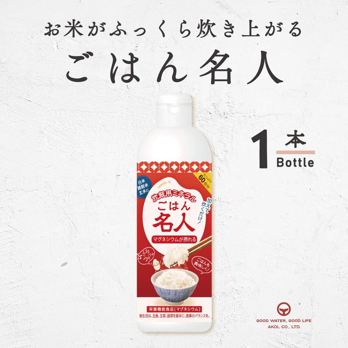 「ごはん名人 300ml」はクリーンな室戸海洋深層水由来ミネラルを100%使用した炊飯用ミネラルです。
